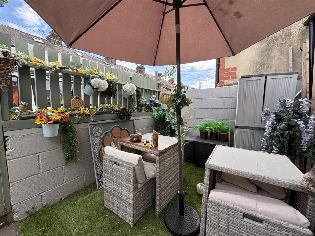 To the rear of the property is a pleasant courtyard garden with a hand gate to the rear access road.