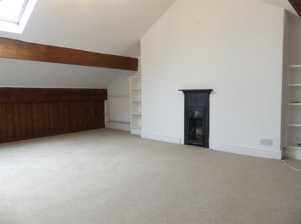 Having fitted carpet, radiator, decorative cast iron fireplace, two small built in shelving units and Velux window to the rear elevation.