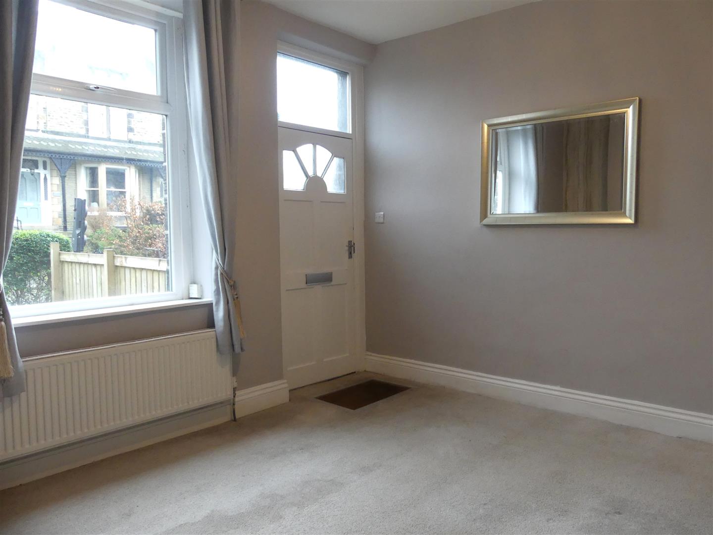 With a wall-mounted electric fire, radiator and a window to the rear elevation. A door leads to the cellar.