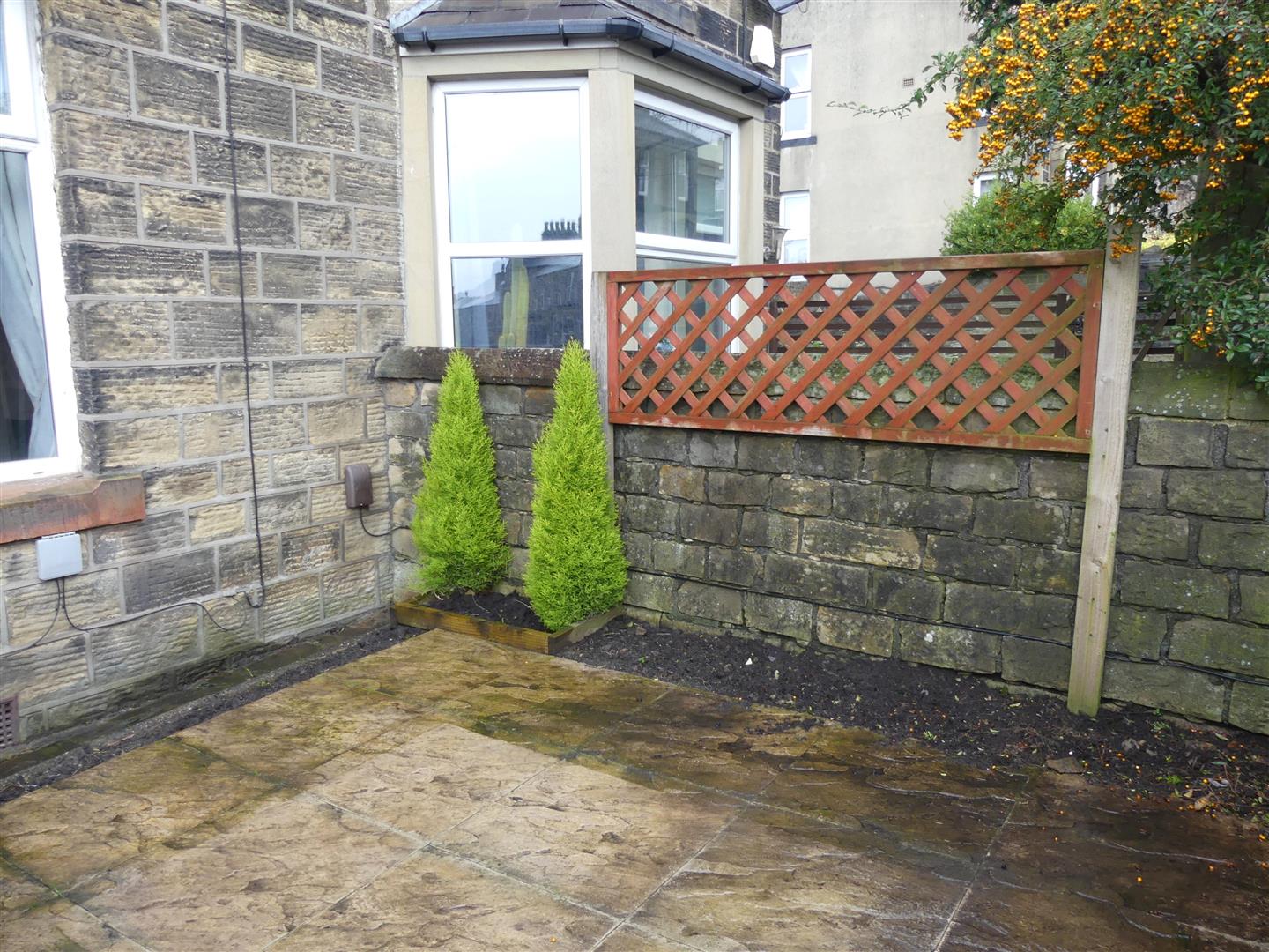 There is an enclosed paved garden to the front and a small yard area to the rear.
