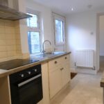 Fitted with a range of cream base and wall units having complementary work surfaces and stainless steel sink unit with mixer tap. Appliances comprise an integrated electric oven with four ring ceramic hob and cooker hood over. There is also plumbing for a washing machine and space for a fridge freezer. Radiator, tile effect vinyl, two windows to the side elevation and a door leads out to a small yard.