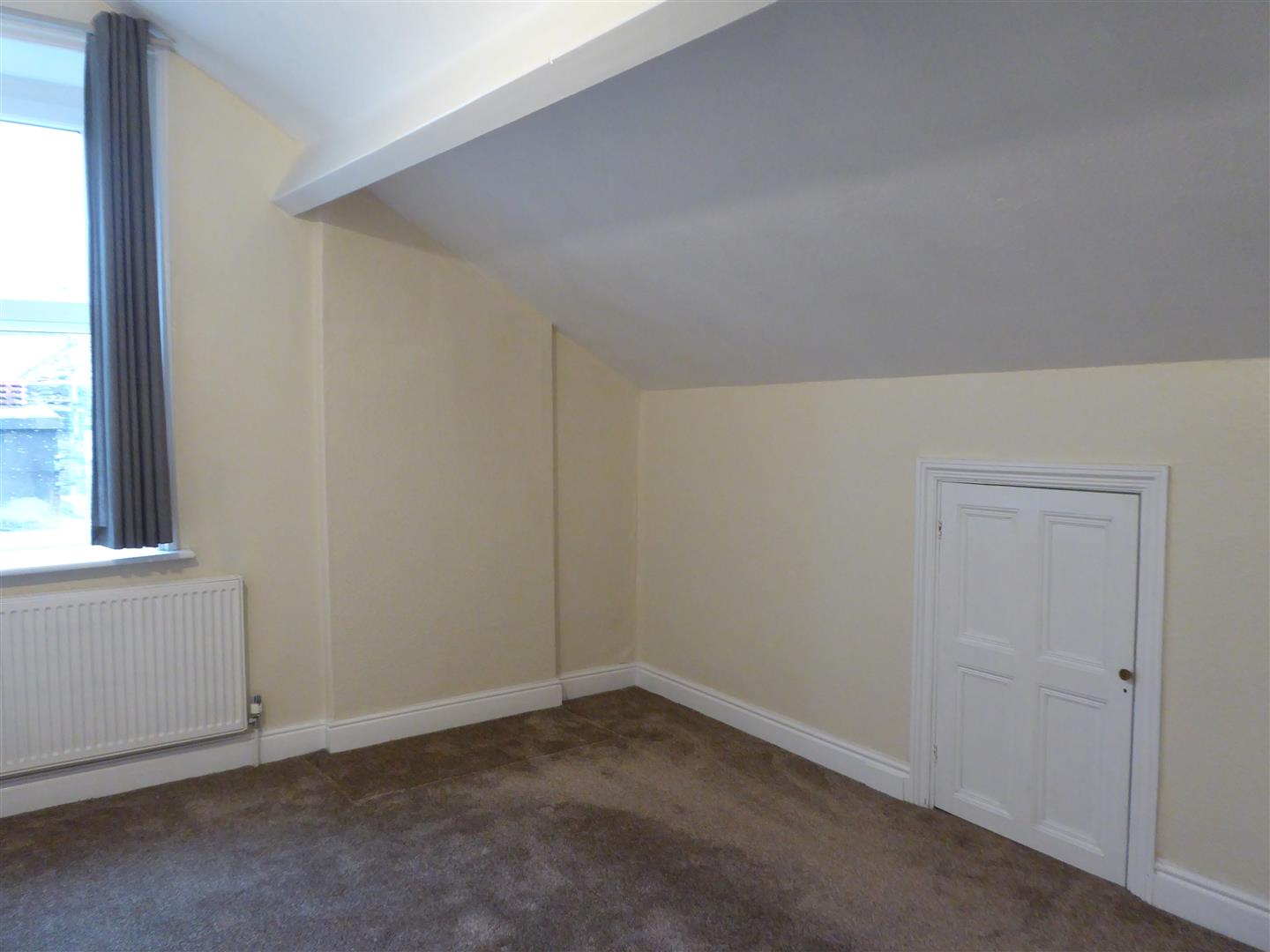 Having a radiator, wall mounted spot lights and a Velux window.