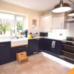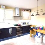 Good size kitchen, space for dining table. Double glazed window to to the rear elevation. Marble worktops with complimentary base units, double Belfast sink, feature light pendant and spotlights, appliances include - oven, ceramic hob & extractor fan, washing machine, dryer, dishwasher and fridge freezer. Vinyl flooring.