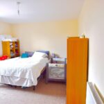 Neutral décor, single glazed window with curtain pole and curtains to rear elevation, one light pendant, one radiator, fitted carpet.