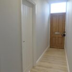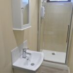 Fitted with a white suite comprising shower cubicle with electric shower, vanity unit with wash basin and low suite w.c. There are also two recessed cupboards, heated towel rail, electric fan heater, LED spot lights, a window to the side elevation and vinyl flooring.