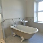 Fitted with a four piece suite comprising a free-standing roll-top bath with shower head attachment, shower enclosure with thermostatic shower, low suite w.c. and pedestal wash basin. There is also a heated towel rail and a window to the rear elevation.