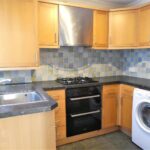 Fitted with a range of Shaker style wooden base and wall units having complementary work surfaces and tiled splash backs. Integrated appliances comprise an integrated double oven and grill, gas hob with cooker hood above, and integrated fridge freezer. There is also plumbing for a washing machine. There is a stone tiled floor, window to the rear elevation and a door leading out to a rear.