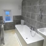 Fitted with a four piece white suite comprising a panelled bath, shower enclosure with rainfall shower plus additional shower head, low suite e.c. and pedestal wash basin. There is also a decorative cast iron fireplace, heated towel rail, extractor fan, vinyl flooring, mirror fronted cabinet and a window to the rear elevation.