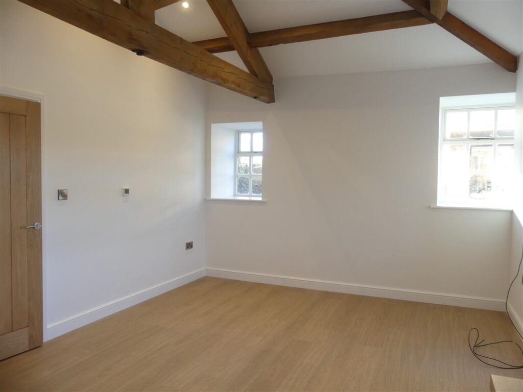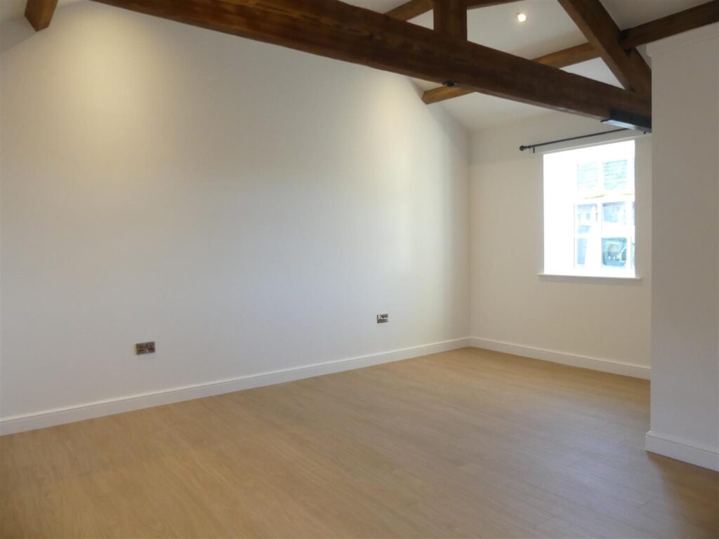 This spacious double has wood effect flooring, exposed beams to the ceiling, windows to each side, television point and recessed spotlights.