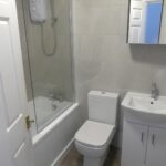 The newly fitted bathroom is fitted with a white suite comprising a panelled bath with electric shower over, low suite w.c. and vanity unit with wash basin. There is also a heated towel rail and a mirror fronted cabinet.