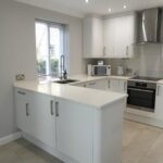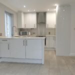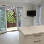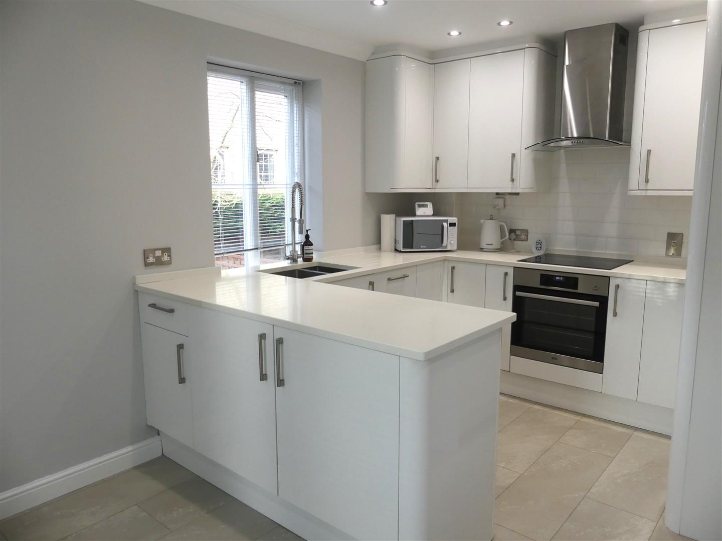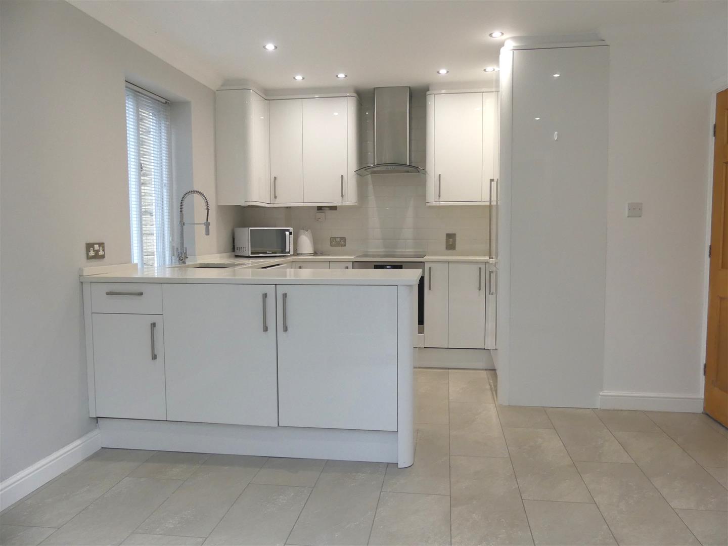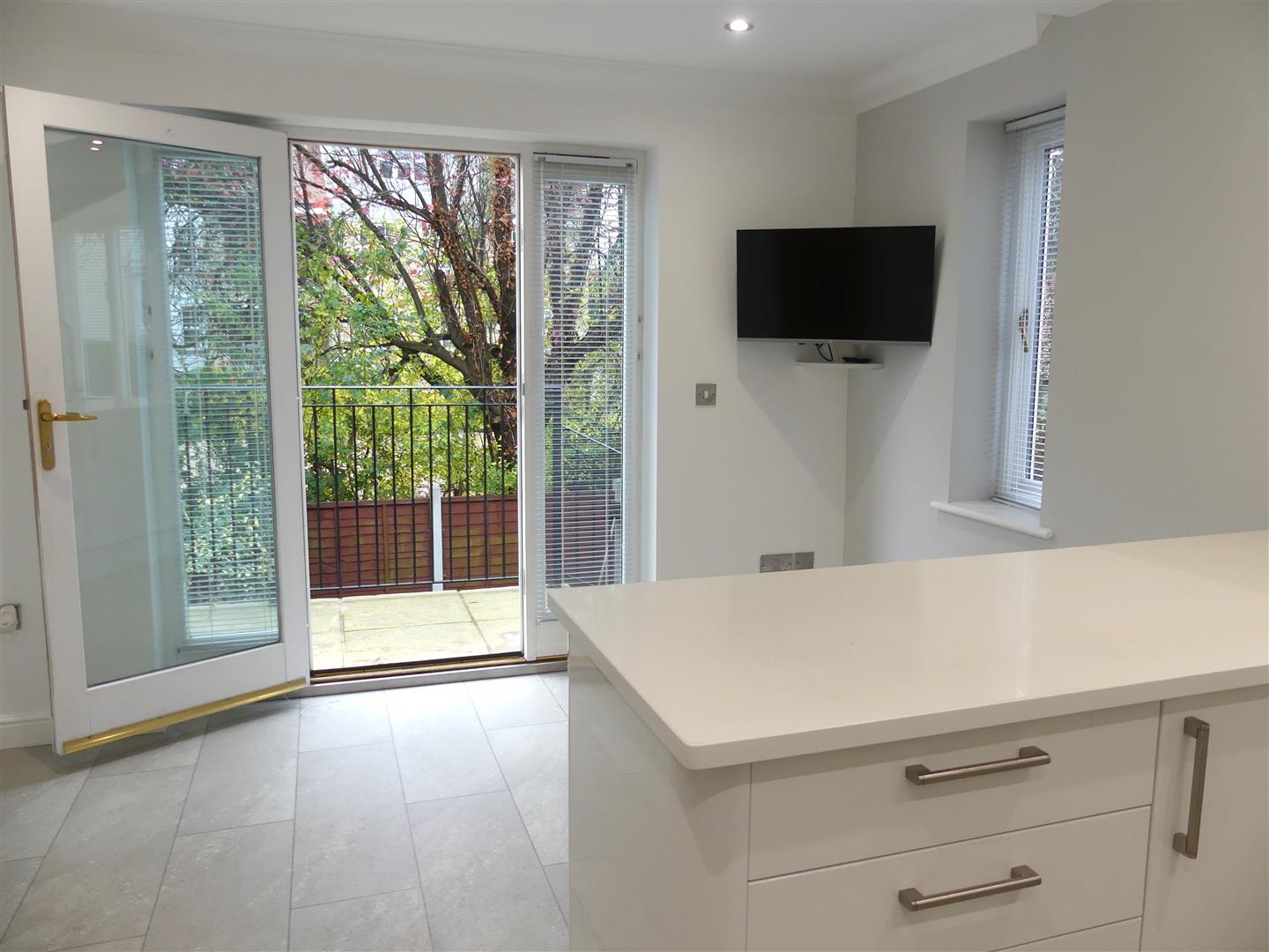 Fitted with a range of high specification white gloss fronted base and wall units having complementary granite work surfaces, inset sink unit with mixer tap and tiled splashback. Integrated appliances comprise an electric oven, ceramic hob, fridge freezer, washer dryer and slimline dishwasher. There is also a ceiling cornice, radiator, two windows and a door to the rear leading to steps down to the rear garden.