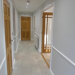 The welcoming reception hall has ceiling cornice and dado rail, coat hooks and a useful linen cupboard with shelving.