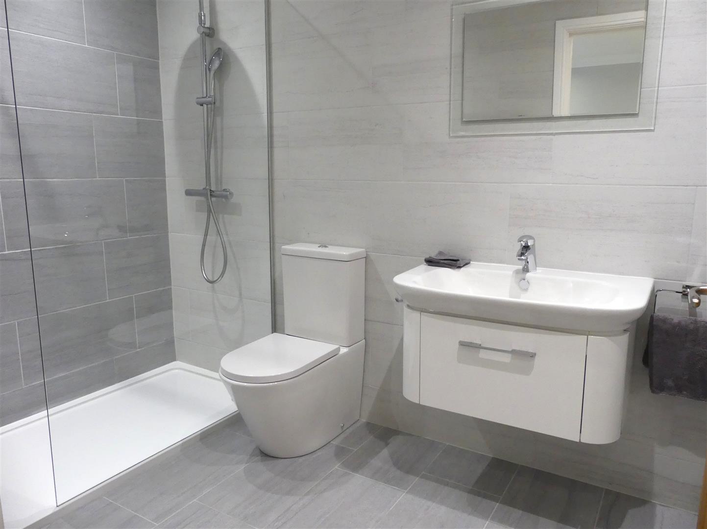 Fitted with a walk in shower, low suite w.c. and wash basin with vanity unit. There is also an extractor fan, mirror, ceramic tiled floor and fully tiled walls.