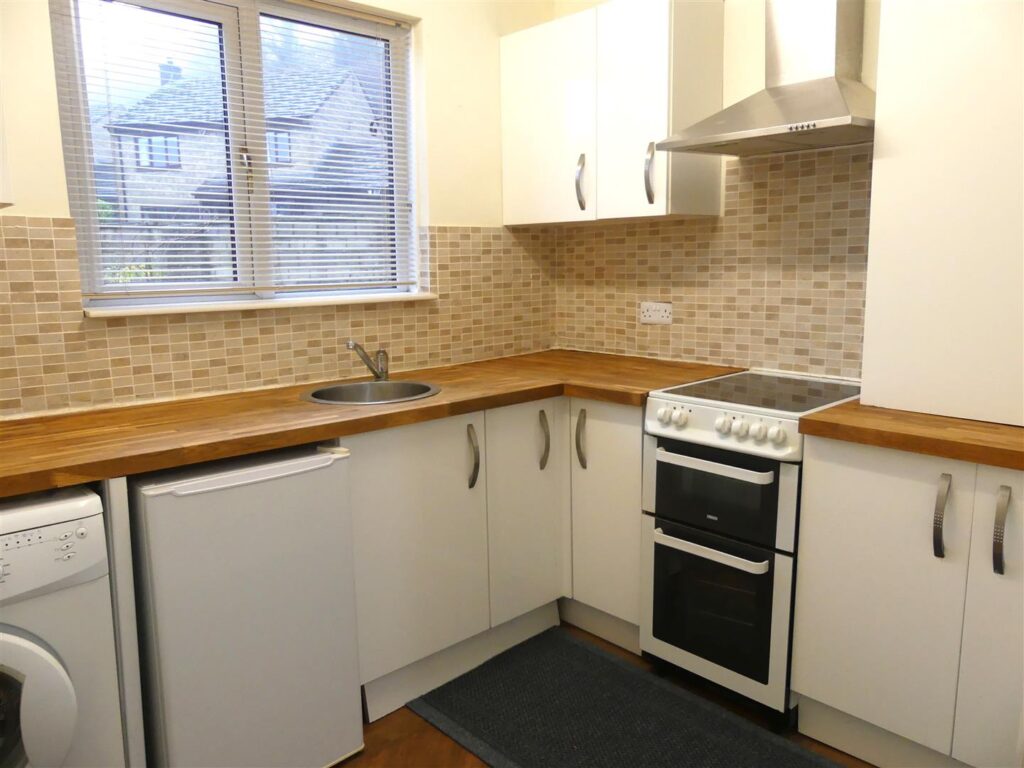 Fitted with a range of base and wall units having wooden work surfaces and stainless steel sink unit with mixer tap. Appliances comprise an electric oven and hob with stainless steel cooker hood. There is also plumbing for a washing machine and space for an under counter fridge. Wood effect flooring and a window to the rear elevation.