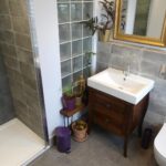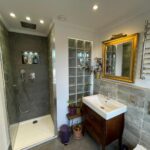 Fitted with a recessed shower enclosure and thermostatic shower, wash basin with vanity unit and a low suite w.c. Fully tiled with underfloor heating, heated towel rail, shaver point and a window to the front elevation.