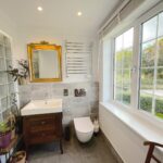 Fitted with a four piece white suite comprising a panelled bath, low suite w.c., bidet and a vanity unit with wash basin. There is also a large heated mirror, heated towel rail, quiet in-line extractor fan and shaver point.