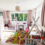 There is a garage with light, radiator and power and a car port for one car with charging socket.