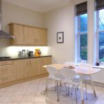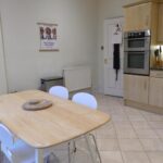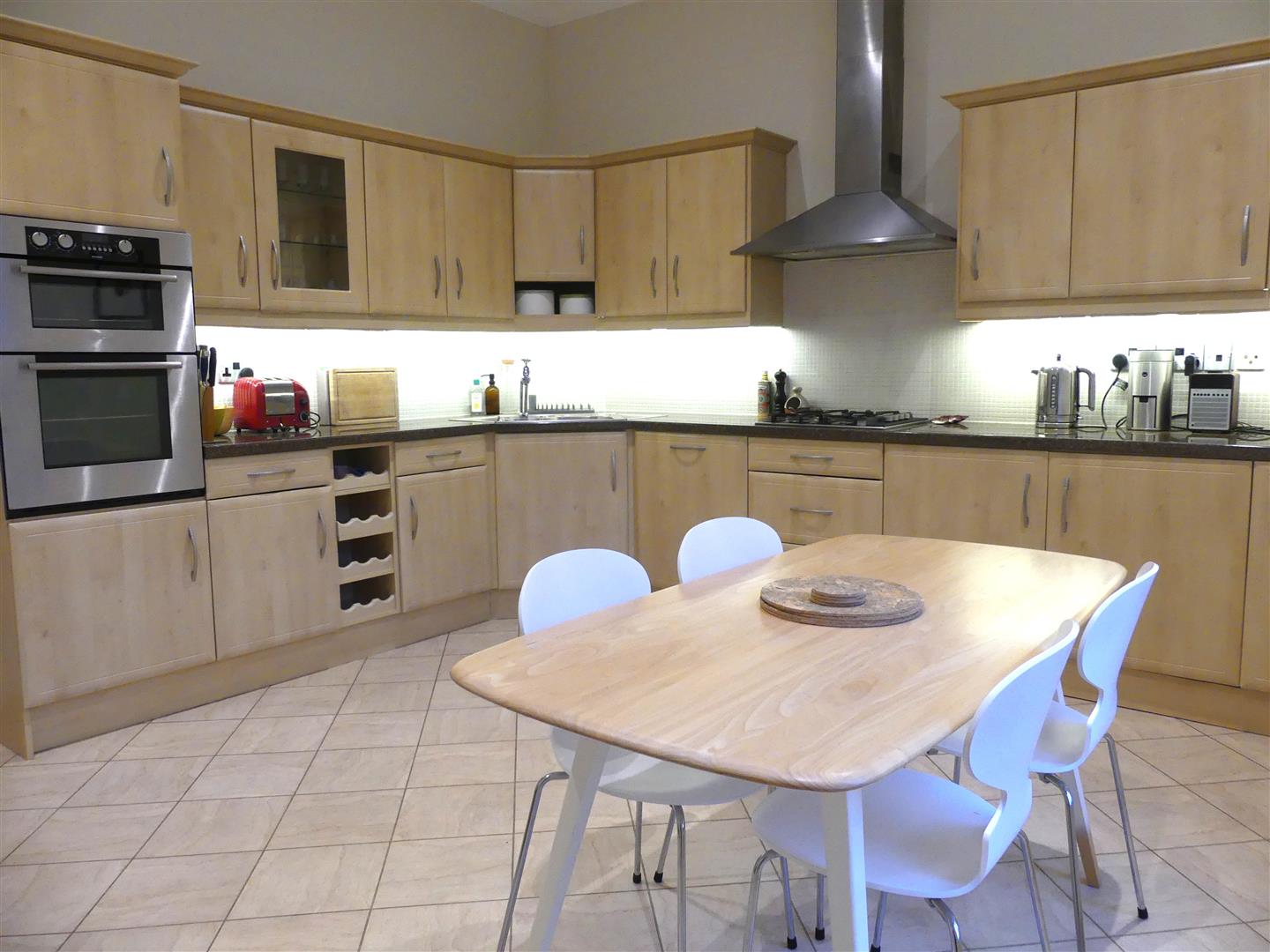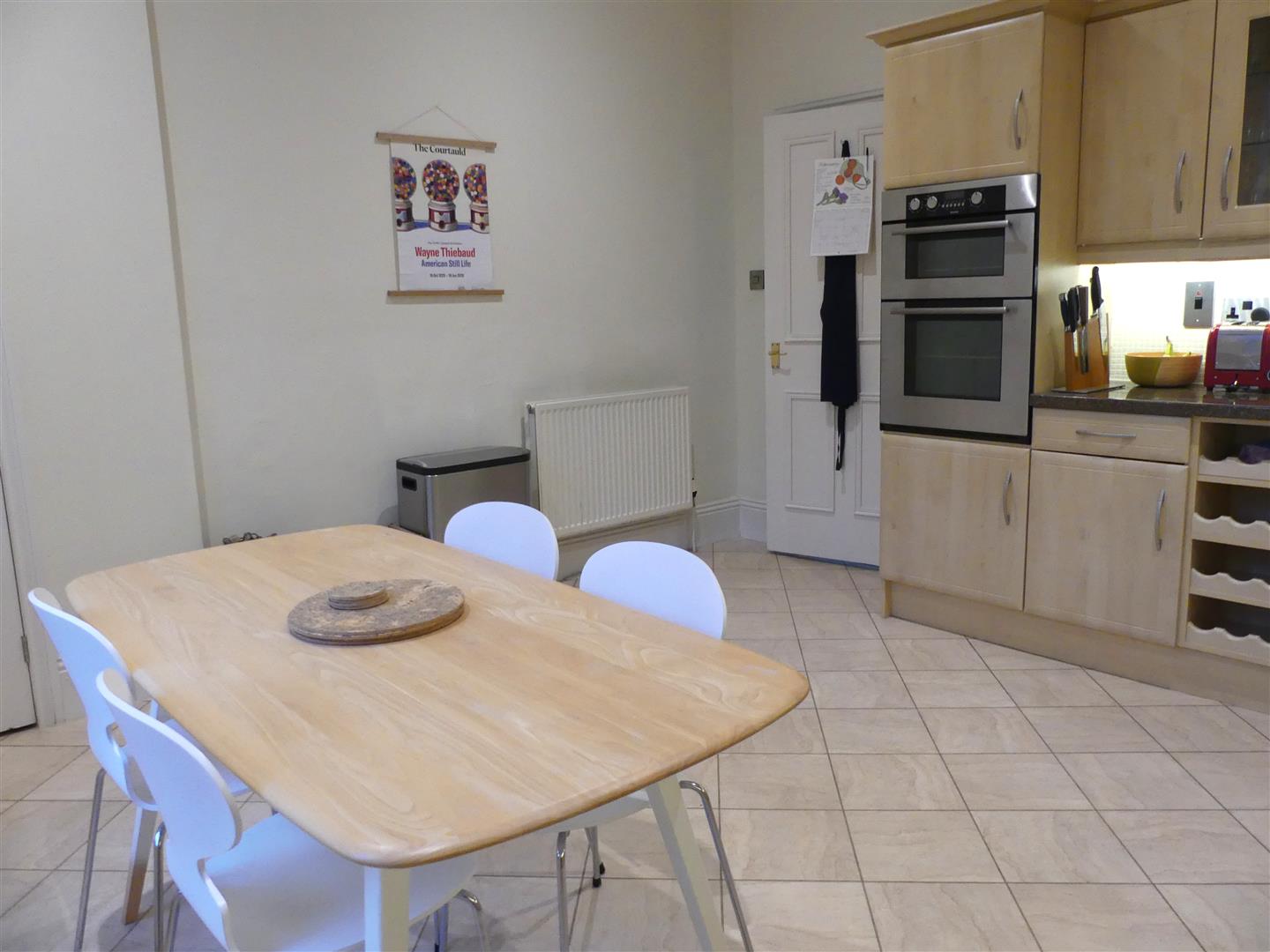 The lovely bright dining kitchen is fitted with a range of light wood effect base and wall units having complementary work surfaces, tiled splash backs and stainless steel sink unit with mixer tap. Integrated appliances comprise an electric oven and grill, under counter fridge, under counter freezer and dishwasher plus a four ring gas hob with cooker hood over. There are also television and telephone points, two radiators, tile effect vinyl flooring, coving, recessed spotlights and under cupboard lighting and two sash windows to the front elevation. A cupboard off houses the boiler and hot water tank.