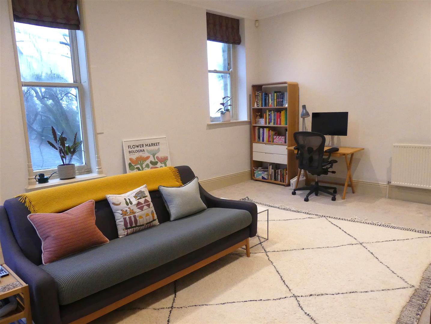 The generous sitting room has two radiators, television and telephone points, recessed spotlights, coving and four sash windows.