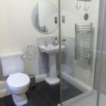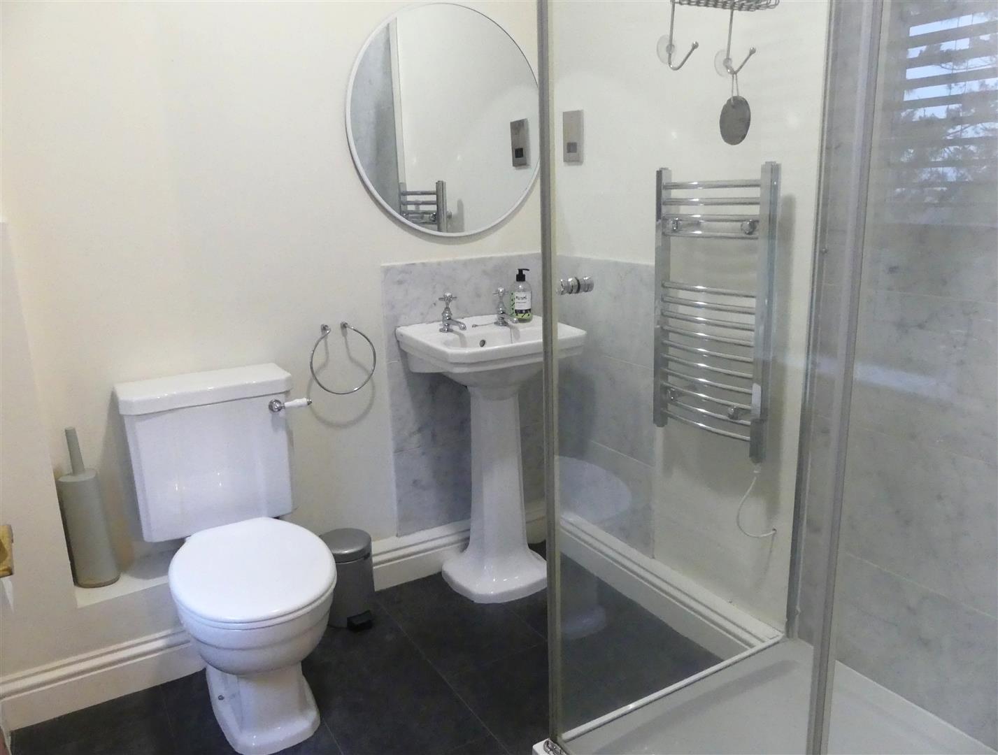 Fitted with a large walk in shower enclosure, pedestal wash basin and low suite w.c. There is also a shaver point, radiator, heated towel rail, extractor fan, coving and a window to the side elevation.