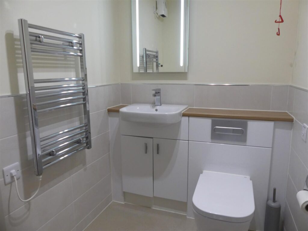 Fitted with a low suite w.c. and vanity unit with sink. There is also a heated towel rail.