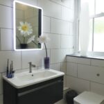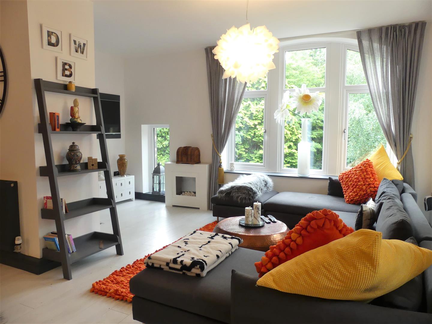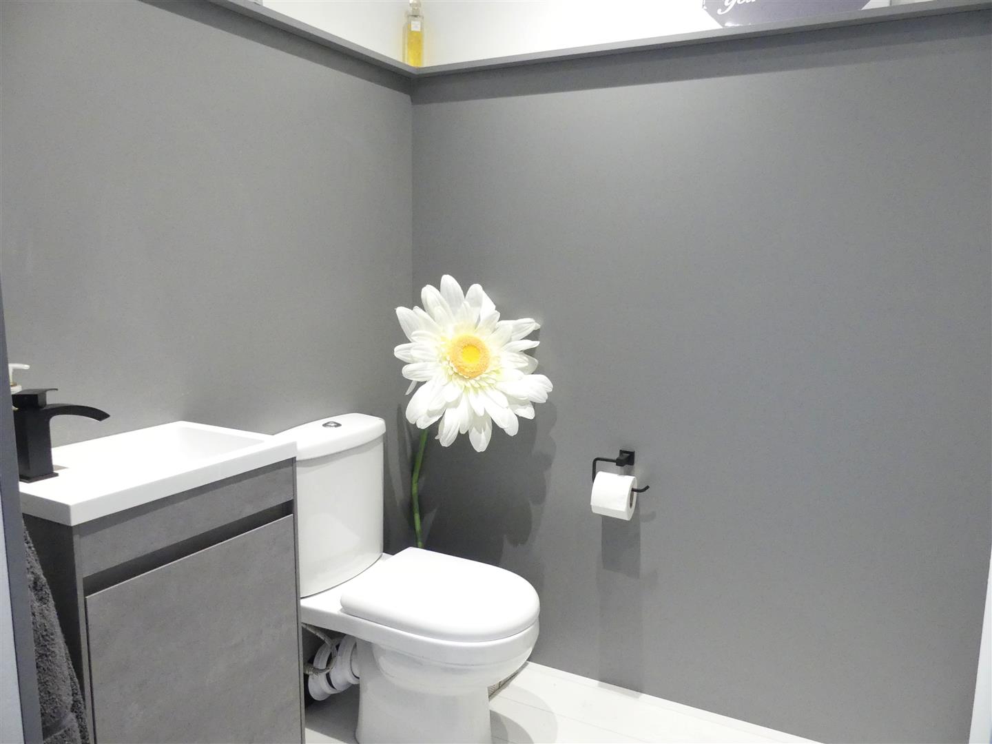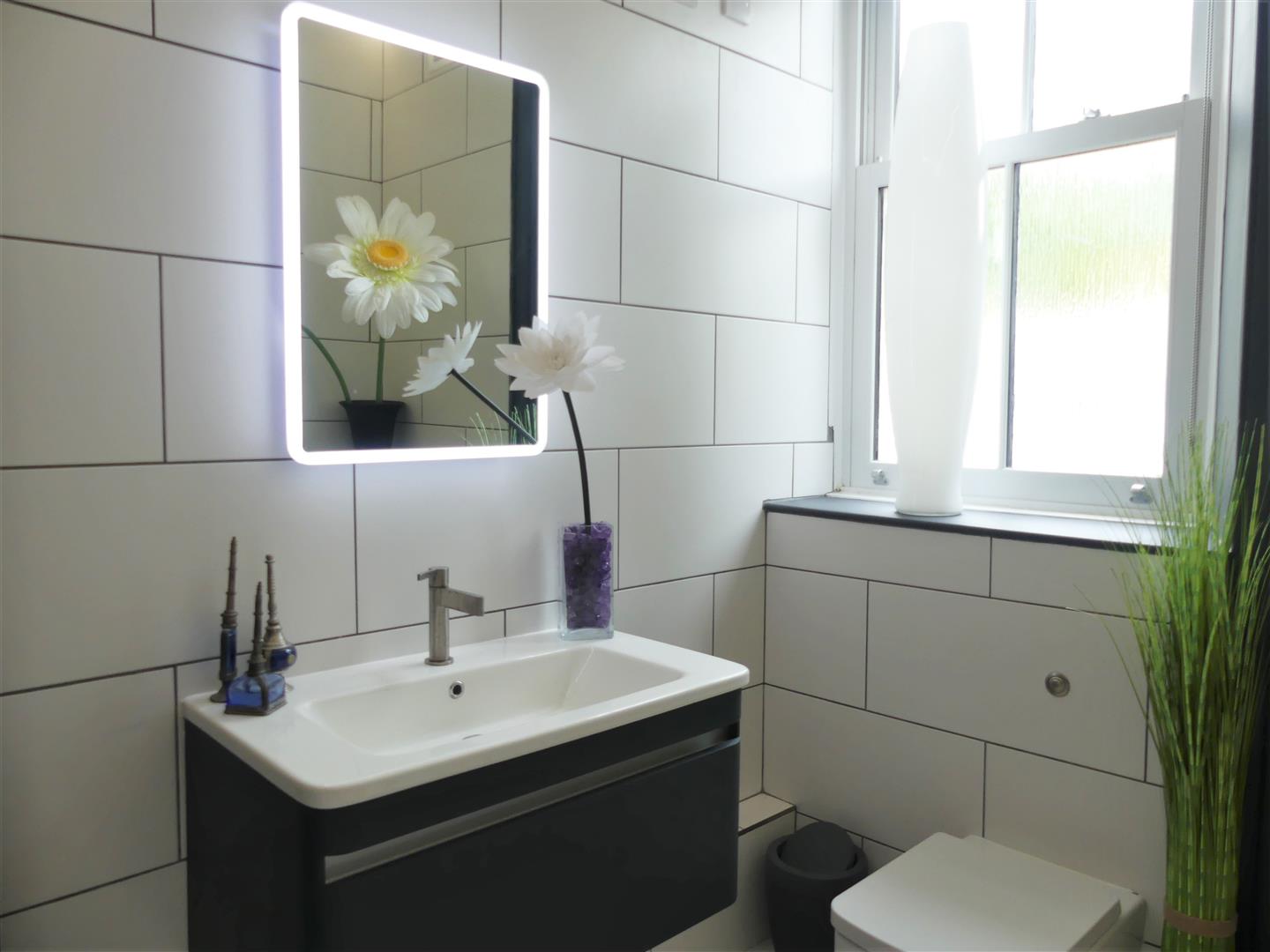 A beautiful modern bathroom fitted with a large bath with handheld shower attachment, vanity unit with basin and a low suite w.c. There is also concealed mood lighting, USB port, an illuminated mirror and useful fitted cupboard. Fully tiled walls and a sash window to the side elevation.