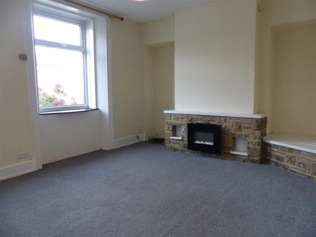 Having a stone fireplace with electric fire, radiator and window to the front elevation.