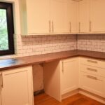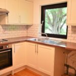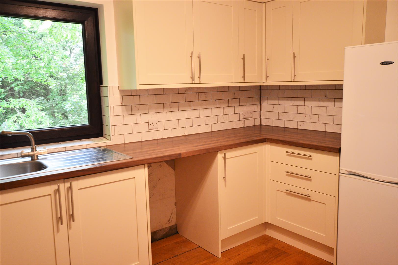 Fitted with a range of Shaker style base and wall units having complementary work surfaces, tiled splash backs and a stainless steel sink unit with mixer tap. Appliances comprise an integrated electric oven with four ring electric hob with cooker hood over and a fridge freezer, there is also space for a washing machine. Radiator, telephone point and a window to the rear elevation.