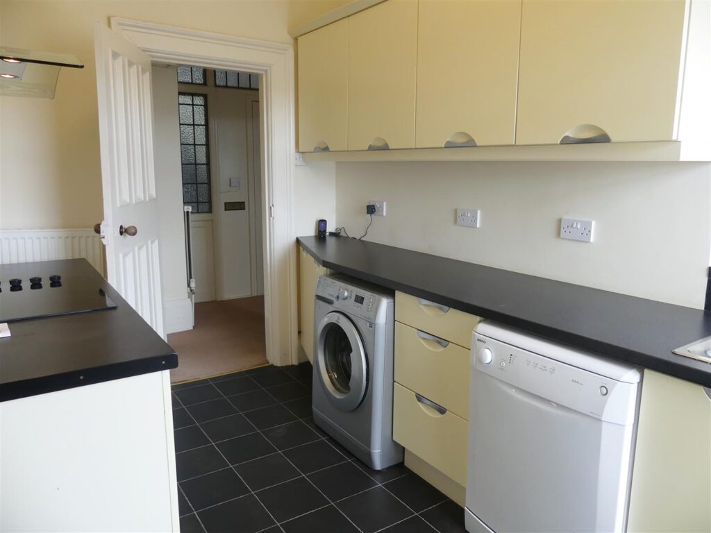 Fitted with a range of cream bas and wall units having complementary laminated work surfaces, tiled splash backs and a stainless steel sink unit. Appliance comprise an integrated electric oven, four ring ceramic hob with cooker hood over and fridge freezer. There is also plumbing for a washing machine, the boiler, built in cupboards, radiator, telephone point and a window to the rear elevation.