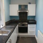 With a range of wall mounted cupboards, base units and drawers, electric oven, gas hob, washer/dryer, fridge with freezer compartment, radiator and UPVC double glazed window to the rear of the property.