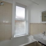 With UPVC double glazed window to the front of the property, bath with electric shower over, wash basin and central heating radiator.