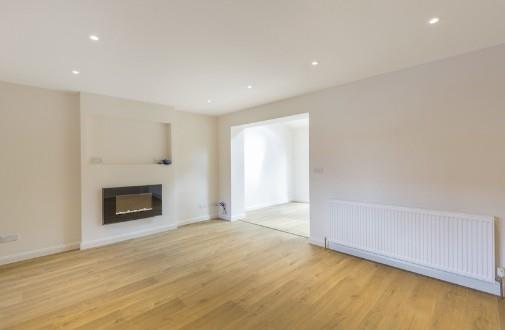 Having an electric fire, wood effect flooring, radiator and recessed spot lights. Open archway through to: