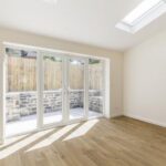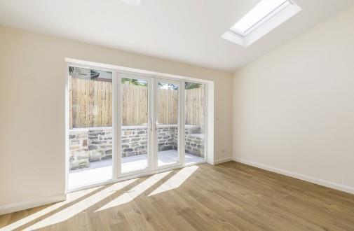 This lovely bright room has French doors leading out to a paved rear courtyard, wall lights, two Velux windows and wood effect flooring.